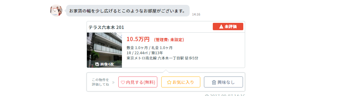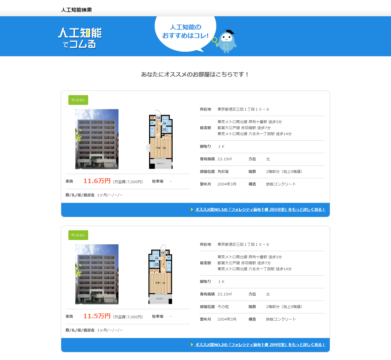 初めての部屋探し、不安だったけどチャットボットサービスがあったから楽しくできたな!不動産はデータ数が多いから、不動産投資サービスにおいては人工知能が活躍するよね(`・ω・´)