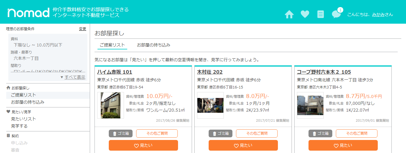 そのまま内見の予約ができたりするからすごい便利だと思う!