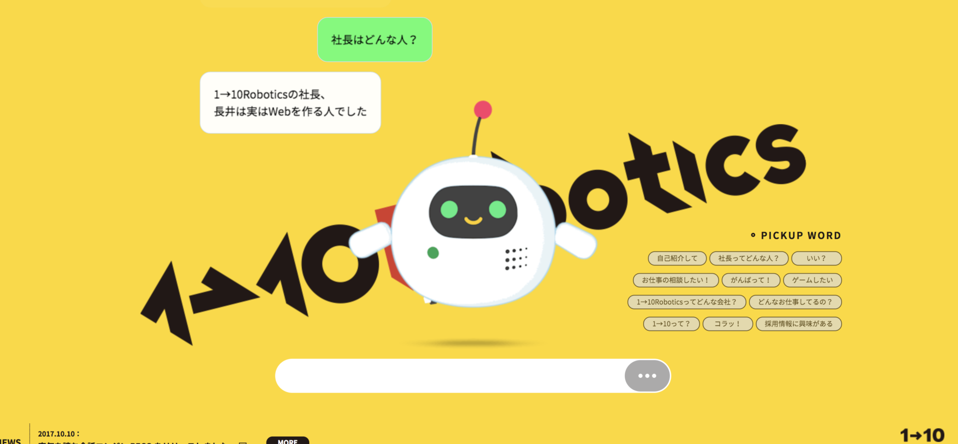 社長がどんな人なのか1→10Roboticsのサイトのチャットボットモッチに聞いてみると….