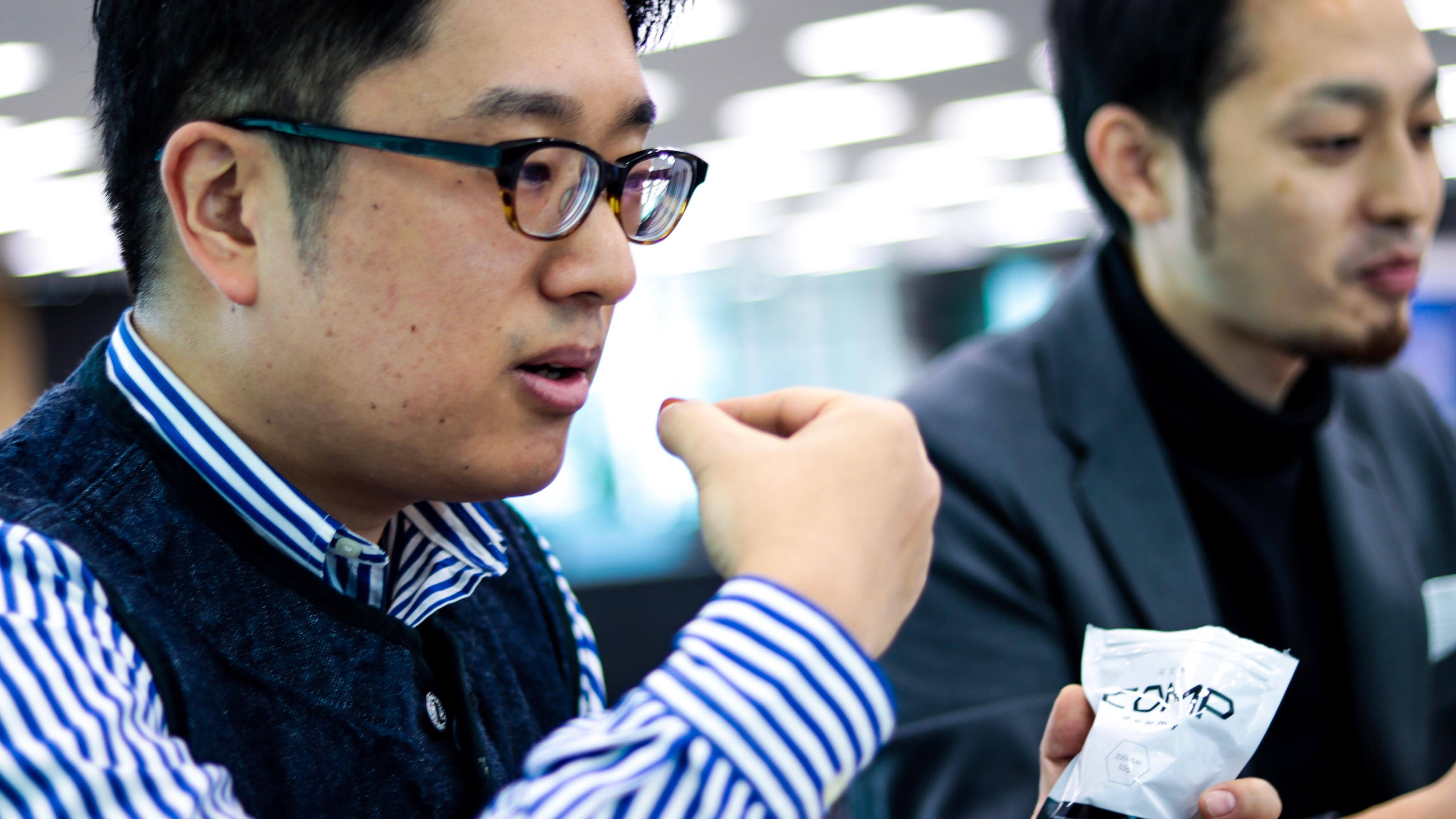 オリエンの最後にこれからのプログラムに向けての英気を養うため、COMPを食べる採択企業のみなさんをパシャり。