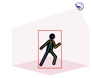 ①AIガードマンは20年にもわたる研究によって培われた人間行動データから人間の行動を正確に認識。カメラの視界に人間が入ると、「人間」として認識します。