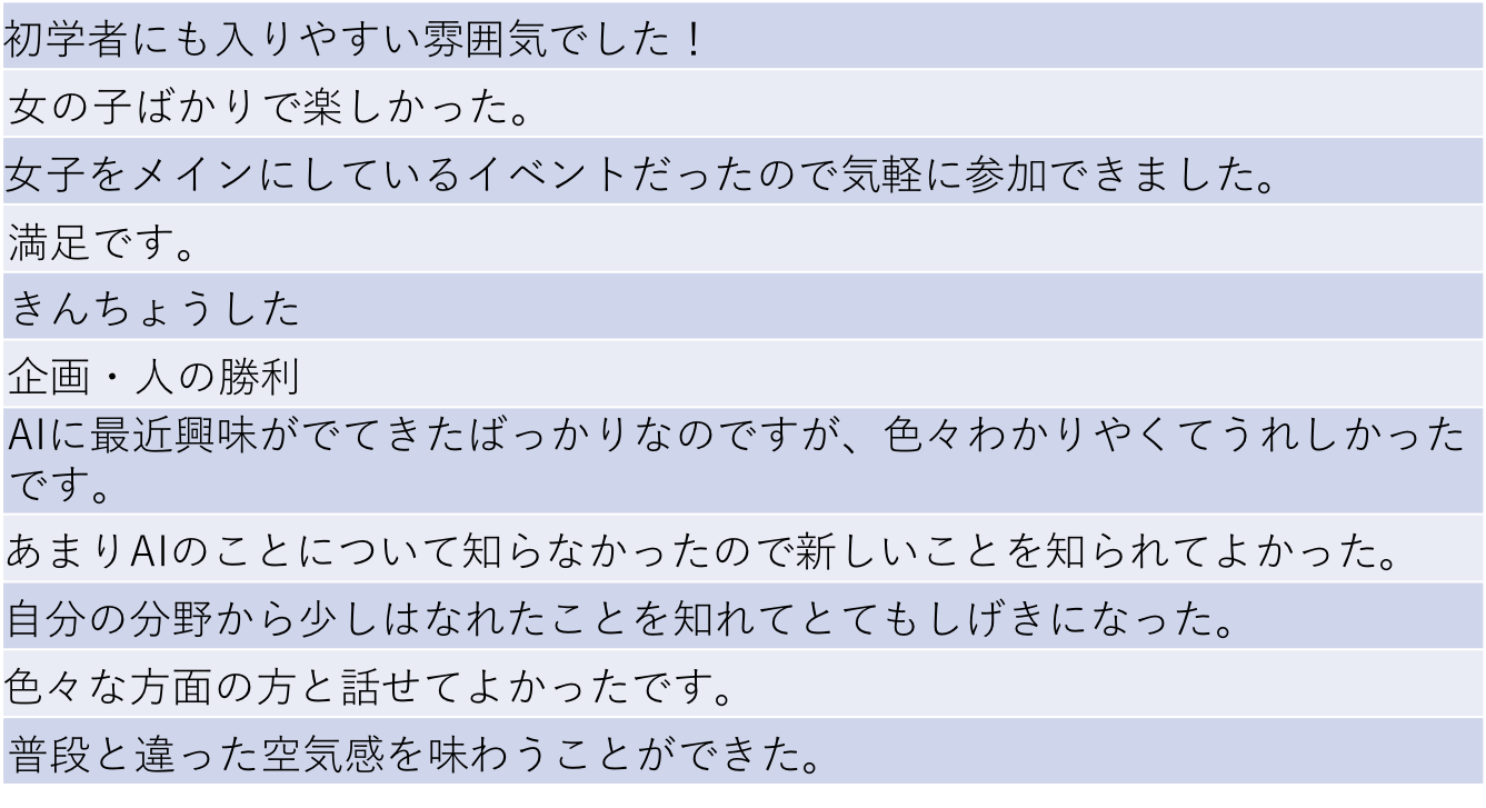AI女子のコミュニティがこれからもできますように、今後イベント開催の際には盛り上げていきたいと思います!