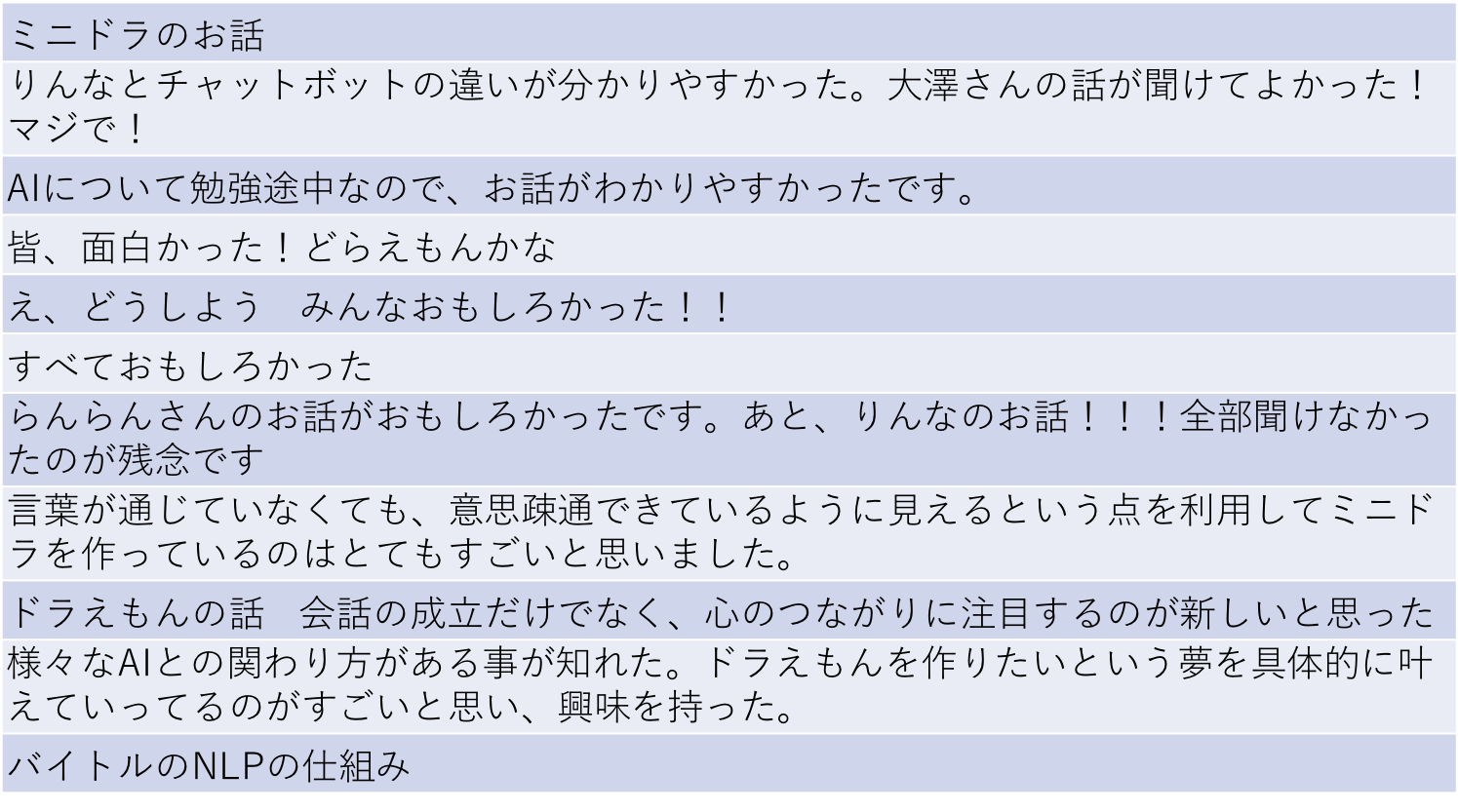 情報系の学部で人工知能(機械学習、自然言語処理など)を学んでいる女子から文系出身の女子、社会人でAIについて興味のある女子のように、幅広い層の参加者が集まりました。