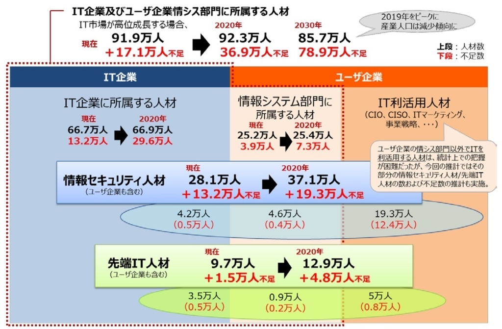 経済産業省のデータでは先端IT人材が2020年には約4.8万人不足すると言います。