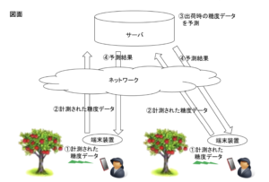「リンゴの糖度データ及びリンゴの糖度データの予測方法」は、所定期間分のリンゴの糖度データや気象条件から、将来の集荷時のリンゴの糖度を測ることのできるシステムです。