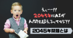 哲学者であるレイ・カーツワイルは、2045年にAIが人間よりも優れた知識・能力を持つと予測しました。それによって起こるさまざまな問題を、「2045年問題」といいます。