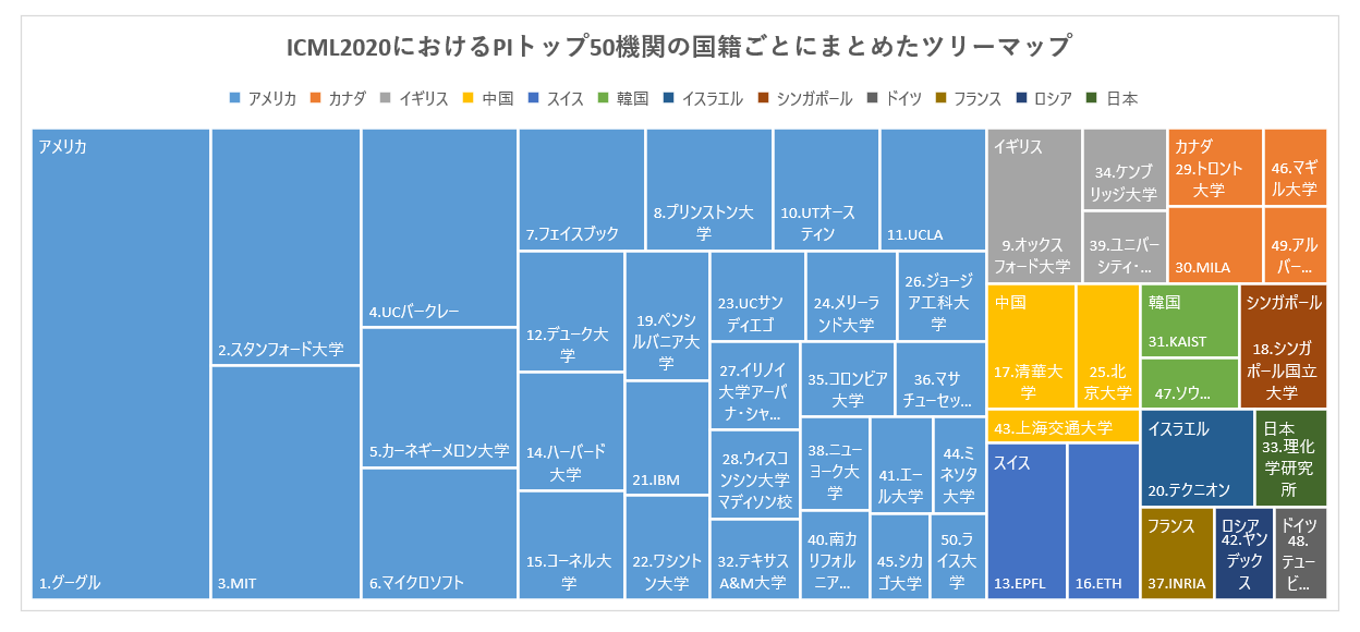 ICML 2020でAI研究をリードする世界の(産官学)機関トップ50(パブリケーション・インデックス付き)