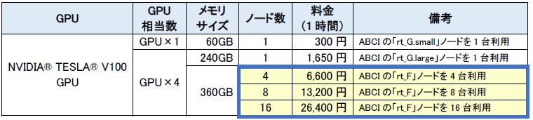 これまで1つの学習処理あたりで利用できる計算ノードは1 台(4GPU)が最大でしたが、今後は最大16 台(64GPU)の利用が可能になります。