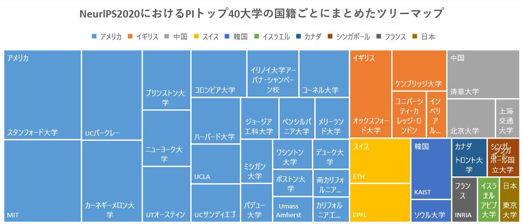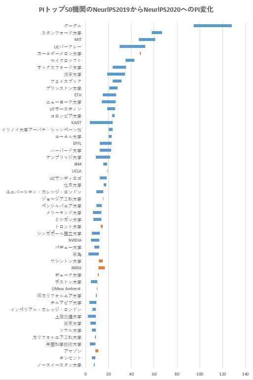 PI増加数とPI増加比率から評価すると、KAIST(韓国)がNeurlPS 2020で躍進したと言える。