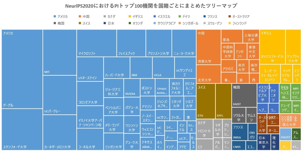 NeurIPS 2020でAI研究をリードする世界の(産業界と学界の)機関トップ100
