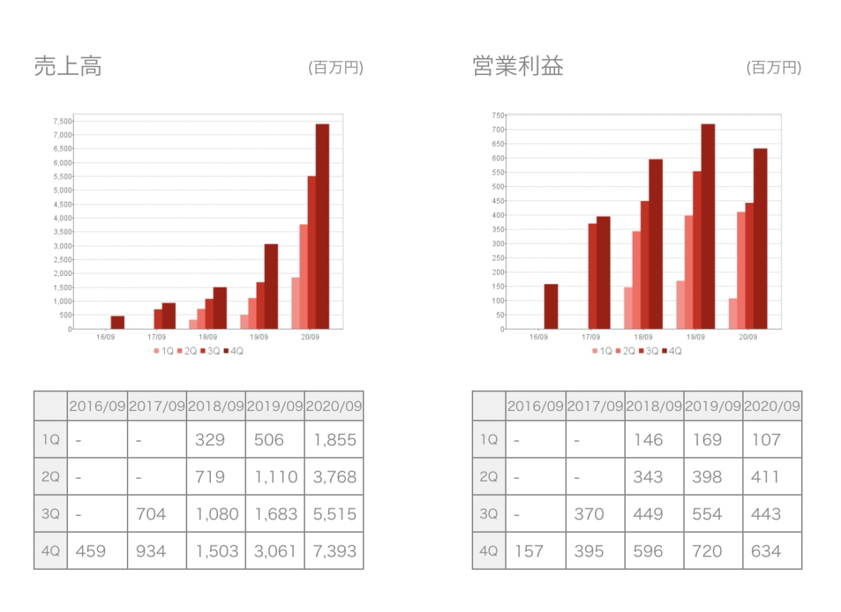 売上高のデータから見てわかるように、PKSHA Technologyは2016年から成長し続けています。2020年は新型コロナウイルスの影響もあり、営業利益が前年より若干減少しましたが、それでも安定して高利益を出すことに成功しています。