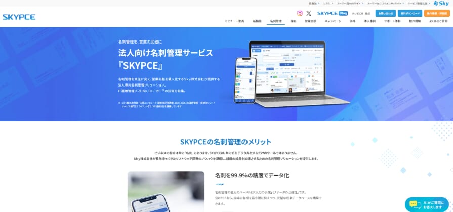 オンライン名刺交換も可能で、簡易SFA機能やオペレーターによるデータ修正が可能です。