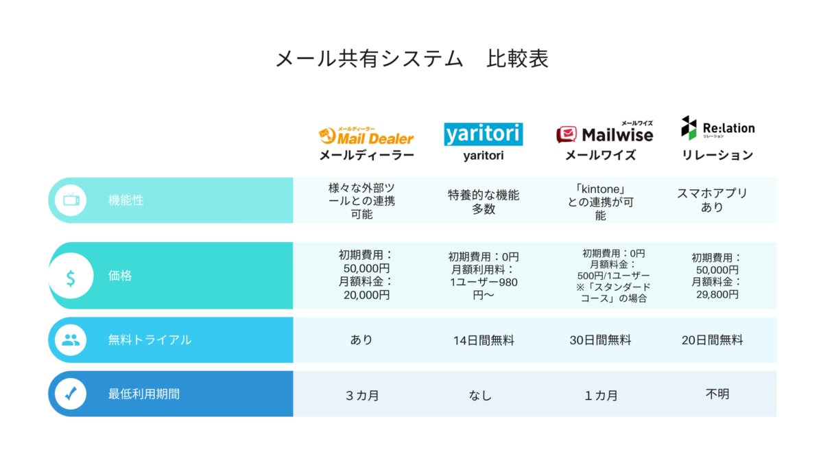 今回はメール共有システムの比較ポイントや、実際のシステムの比較を紹介しました。