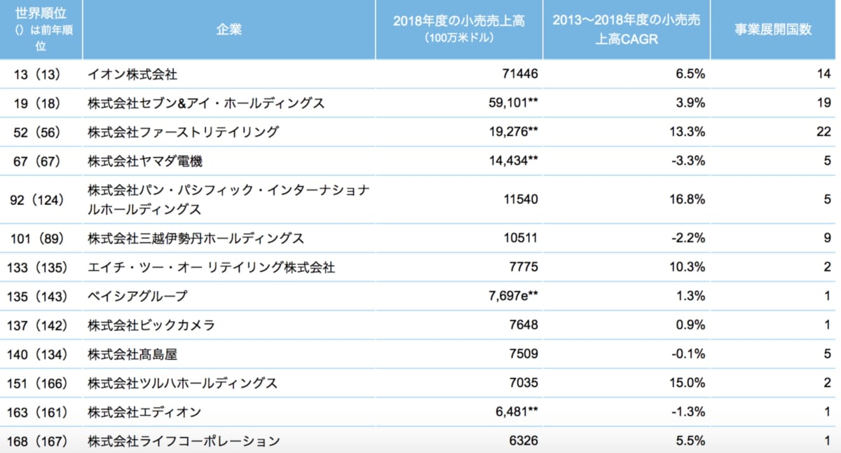 ここで先進事例としてあげられるのは中国や東南アジアで急速に数を伸ばしてきているイオンモールです。デロイトトーマツグループの「世界の小売業ランキング2020」レポートによると、トップ250の中で、イオンは13位にランクインしており、同ランキングの中の日本企業では最上位に君臨しています。7期連続で日本小売業の営業収益No.1を達成しており、イオンは名実ともに日本の小売企業の第1位です。