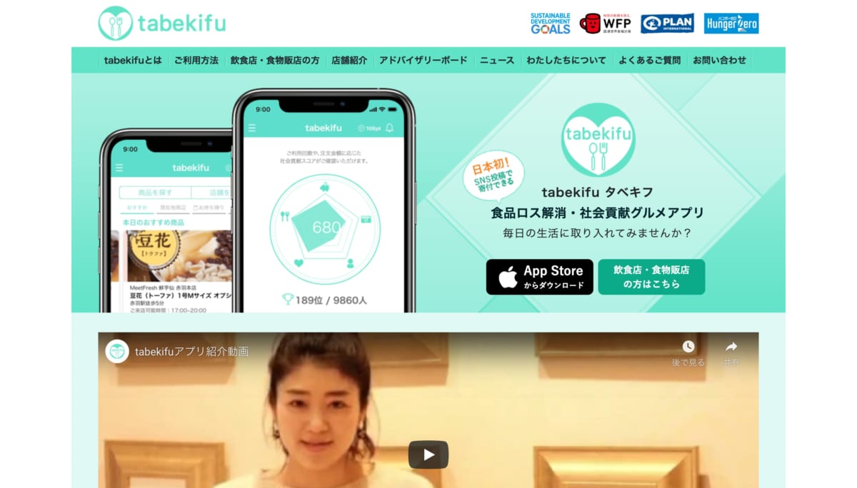 商品を掲載する際に店舗のプローモーション活動にも力を入れているサービスで、無料で店舗ページを作成できたり自然とSNSで拡散される仕組み化がされています。また、tabekifu独自のシステムで 社会貢献スコアを見える化しており、アプリの利用を促進化する仕組みになっているので積極的な利用が見込めます。