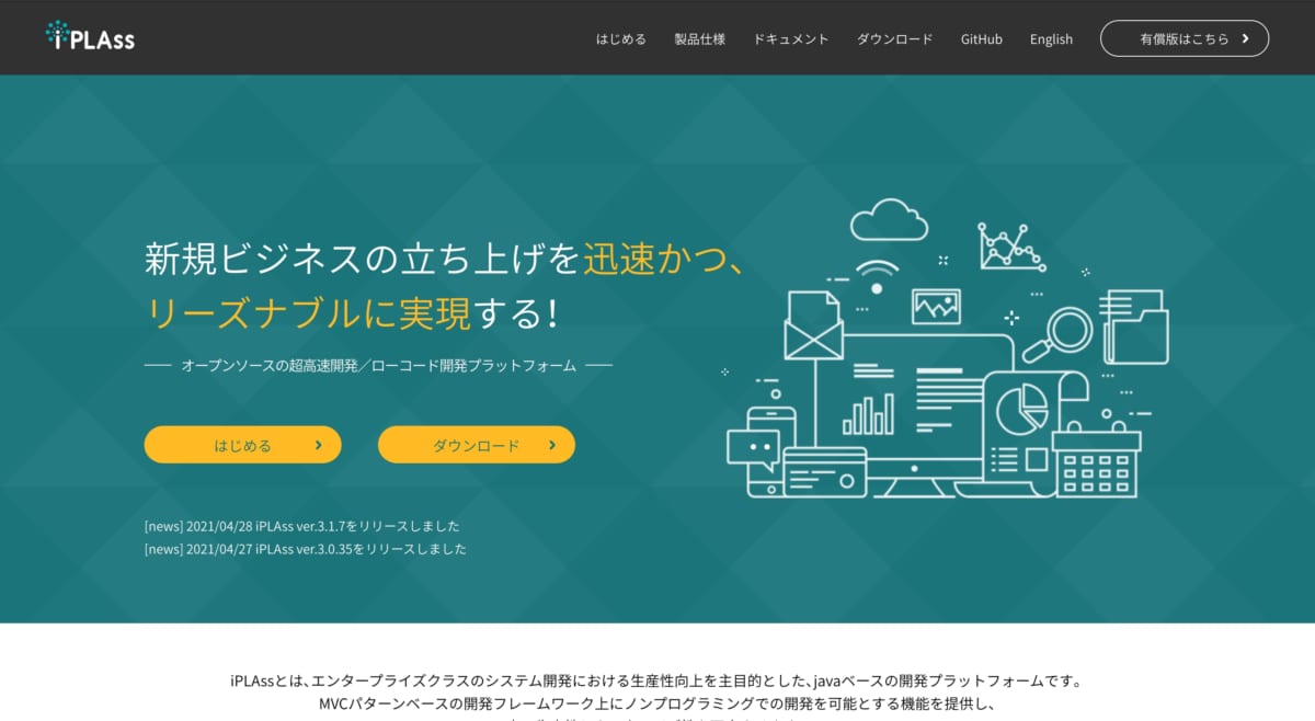 「カスタムWebアプリケーション」や「モバイルアプリケーション」を迅速に構築し、展開可能なOSSのローコード開発ツール。新規ビジネスの立ち上げを安く、容易に実現。