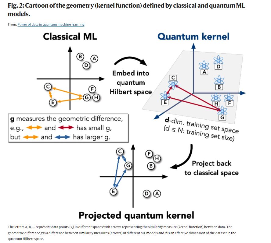 古典的カーネル法と量子カーネル法における幾何学的差異を説明する画像