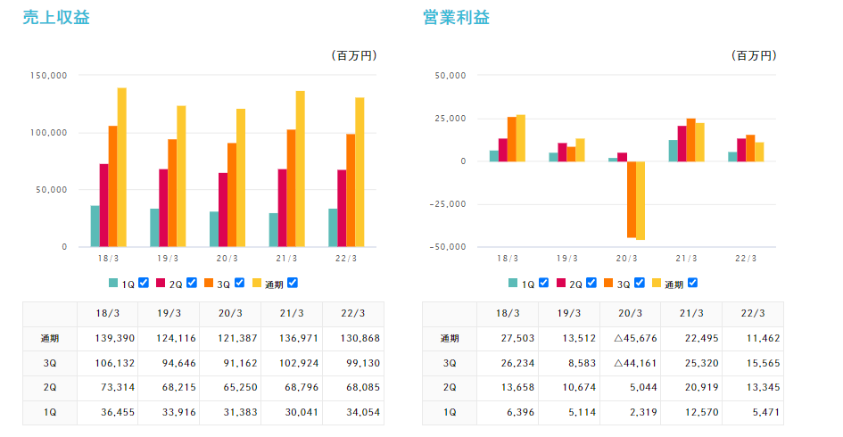 売上収益を見ると、2018年から2022年にかけて急激な成長は見られませんが、安定した経営をしていることがわかります。2020年は、新型コロナウイルスの影響があり営業利益がマイナスになっていますが翌年2021年からは例年通りの高利益を生み出すことに成功しています。