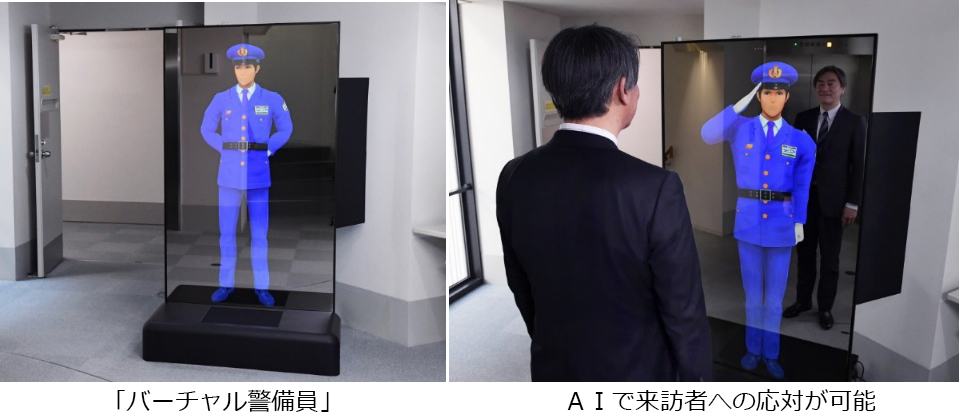 「バーチャル警備システム」は、日本初の警備会社としてセコムがこれまで培ってきたセキュリティのノウハウに、AGC、DeNA、NTTドコモ各社の最新技術を掛け合わせて実現した、世界初となるAIを搭載したバーチャルキャラクター「バーチャル警備員」が常駐警備サービスを提供するセキュリティシステムです。