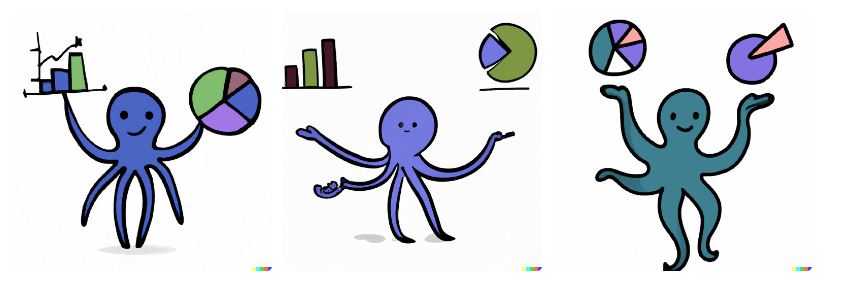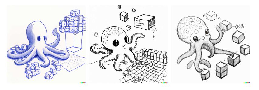 なかなかいい!もう少し奥行きがあったほうがいいとはいえ、漫画調に見える。しかし、いちばんの問題はこの「octopi(タコ)」(「Octopus」の美しい複数形)がチャートを持っていることだ。OctoSQLはチャートを扱っているのではなく、データを扱っている。これらの画像では OctoSQL で何が可能かについて、誤った期待を持たせてしまうかも知れない。