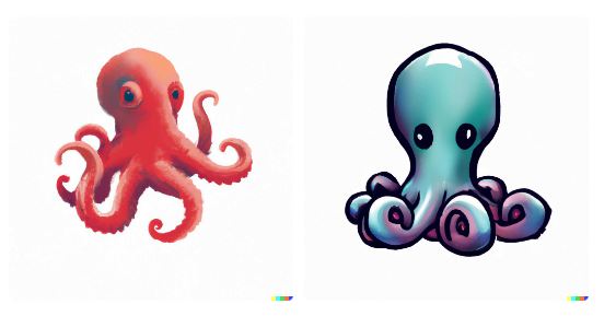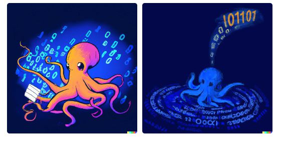 以上の画像は面白いので、生成した価値はあった。しかし、ロゴとして使うには具合が良くない。もしかして、Dall-eに求めすぎなのか。データビットに関する描写のないシンプルなタコを試してみよう。