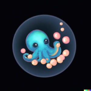 ロゴ画像を出力した後、Procreateで背景を透明にしてから画像を少し小さくして、タコを囲んでいる泡が画面全体を占めるようにすると、このような(すでにお見せしている)ロゴ画像となった。