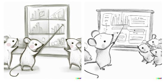 ホワイトボード上で他のマウスにデータビジュアライゼーションを教えるマウス、デジタルアート、鉛筆によるスケッチ、かわいい(A mouse teaching other mice data visualization on a whiteboard, digital art, pencil sketch, cute)