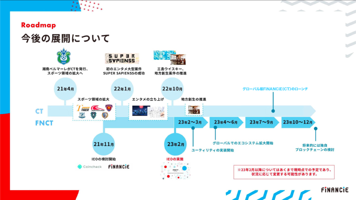したがって、グローバルでFNCT自体の流動性を高めることと、海外にトークン発行型クラウドファンディング事業を展開することの2つがフィナンシェの展望です。
