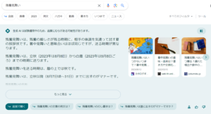 SGEを使用した検索では、「残暑見舞いはいつ頃送る? 」と質問した際に概要が記載された後に、「残暑見舞いに何を送ったら喜ばれますか?」や「残暑見舞いのマナーは?」といった追加で質問できる機能がある。
