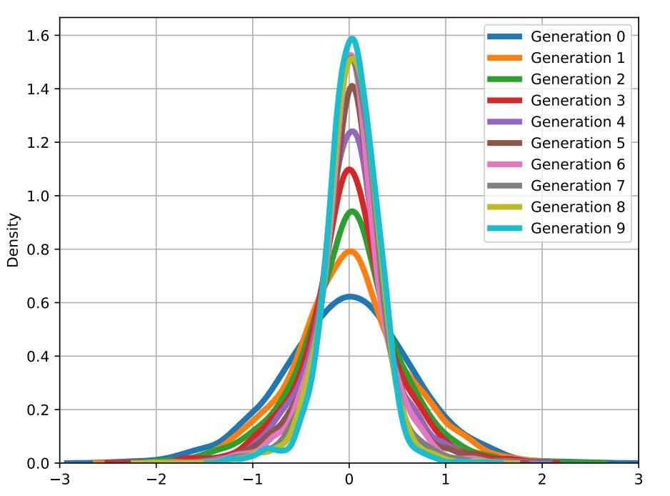 論文の著者の言葉を借りれば、「オリジナルコンテンツの分布の尾が消える」とき、新しいモデルが出力する生成物は時間の経過とともにますます平均的なものになり、よりつまらなく退屈で、最終的には人間が書くようなものとは関連付けられなくなる。共著者のロス・アンダーソン(Ross Anderson)がブログで書いているように、こうした劣化したモデルが「インターネットをつまらないもので埋め尽くす」ことになる。