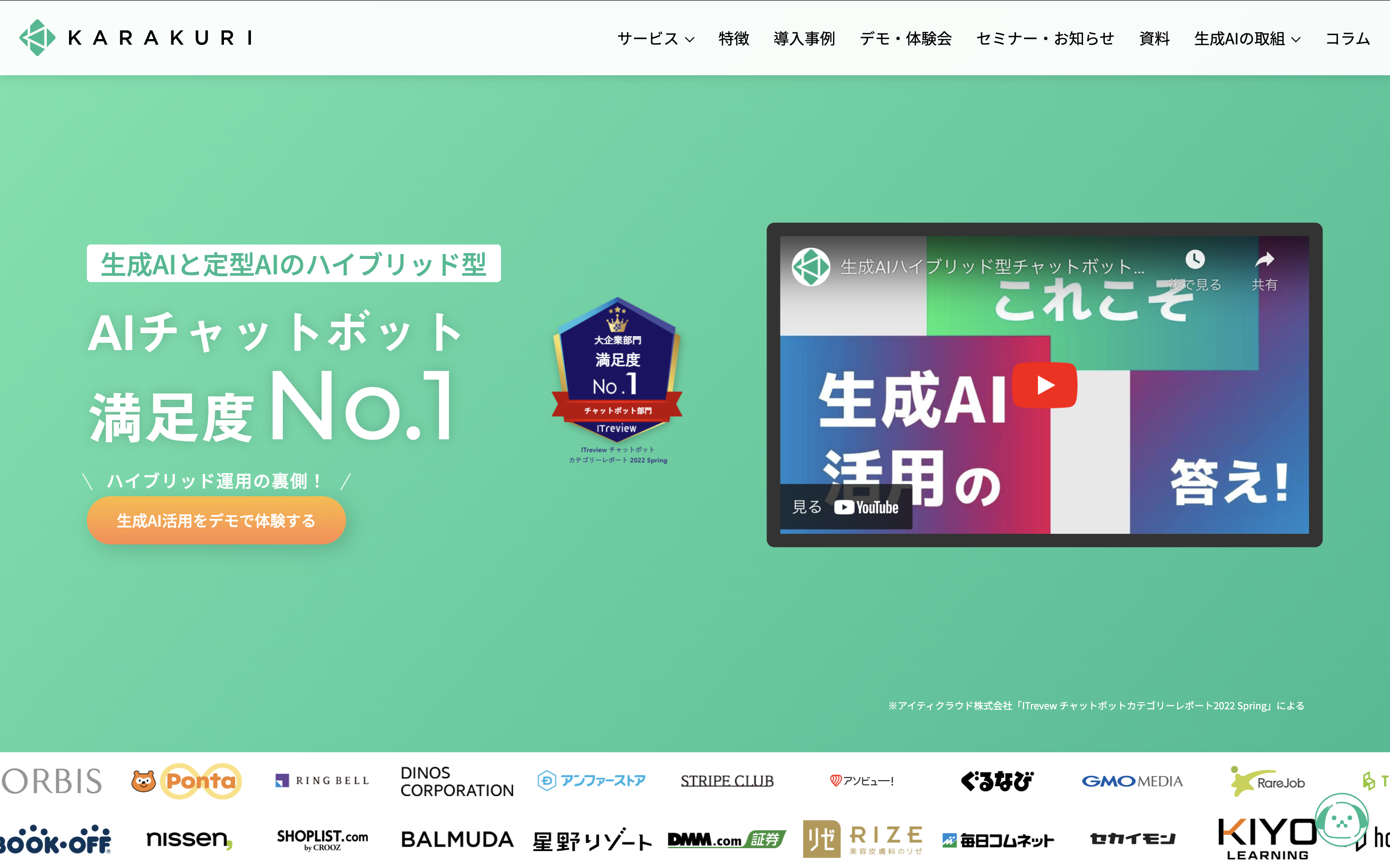 顧客問い合わせ対応向けのおすすめ生成AIチャットボットは、「KARAKURI chatbot」です。
