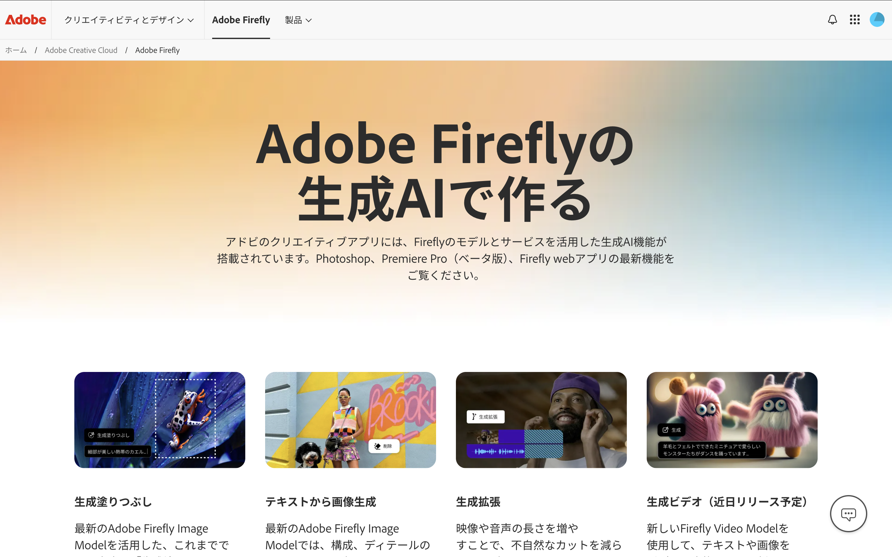 Adobe Fireflyとは、クリエイティブツールを提供するAdobeが開発した画像・イラスト生成AIです。