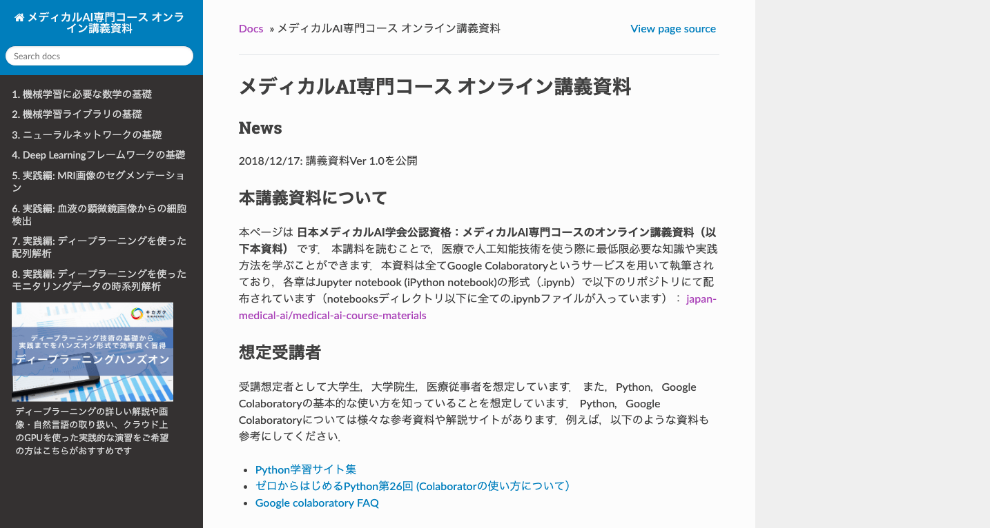 ・メディカルA・Study AIコース オンライン講義資料(株式会社Preferred Networks・株式会社キカガク)