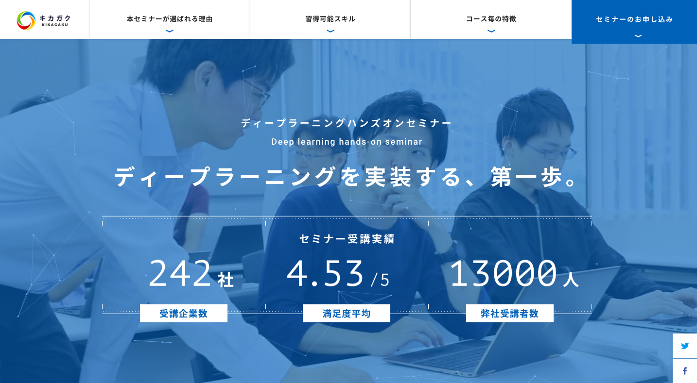「学びに、自由を。学びで、自由を。」をモットーに、機械学習、IoT、ビッグデータといった最先端の分野に特化した講座が提供されています。