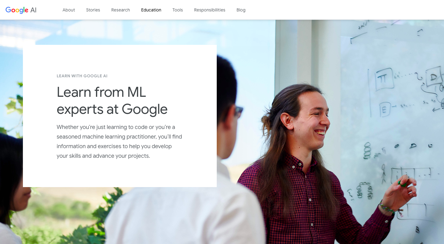 Googleによって無料で公開されているAI学習ページです。機械学習の基礎を動画で学習することができます。