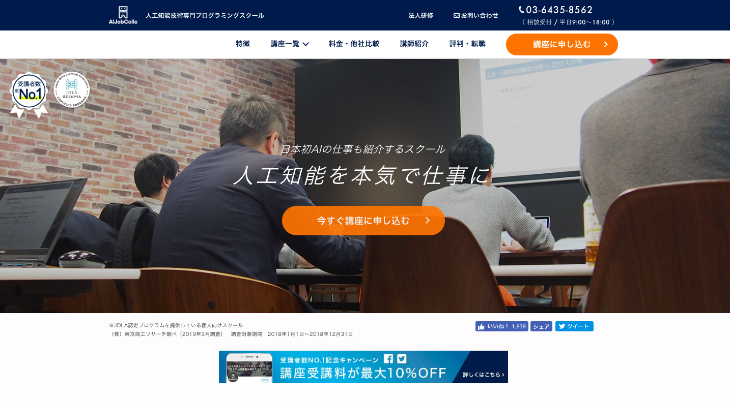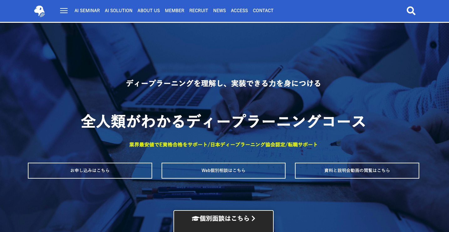 AI学習支援・転職支援を行うAI学習専門プログラミングスクールです。
